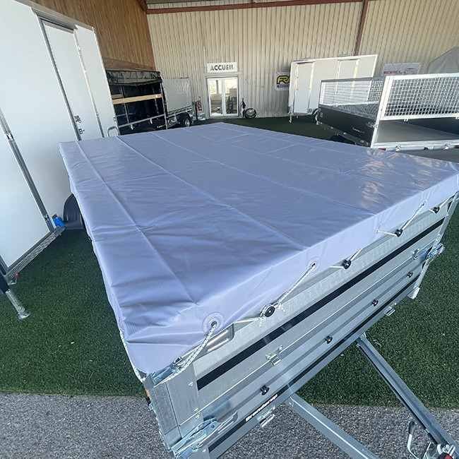 La bâche plate permet de protéger votre chargement des intempéries et des regards lors de vos déplacements. Elle est ici présentée sur les rehausses pleines