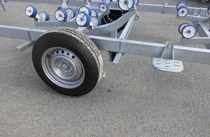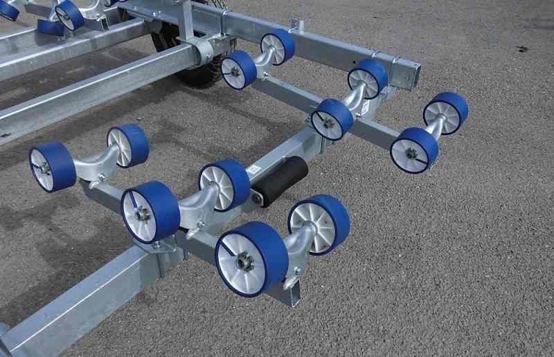 Ce chariot de manutention et de mise à l’eau multi-rouleaux permet le transport sur terrain privé d’une embarcation d’un poids maxi de 1010 Kg et d’une longueur de coque pouvant aller jusqu’à 5,5 m.