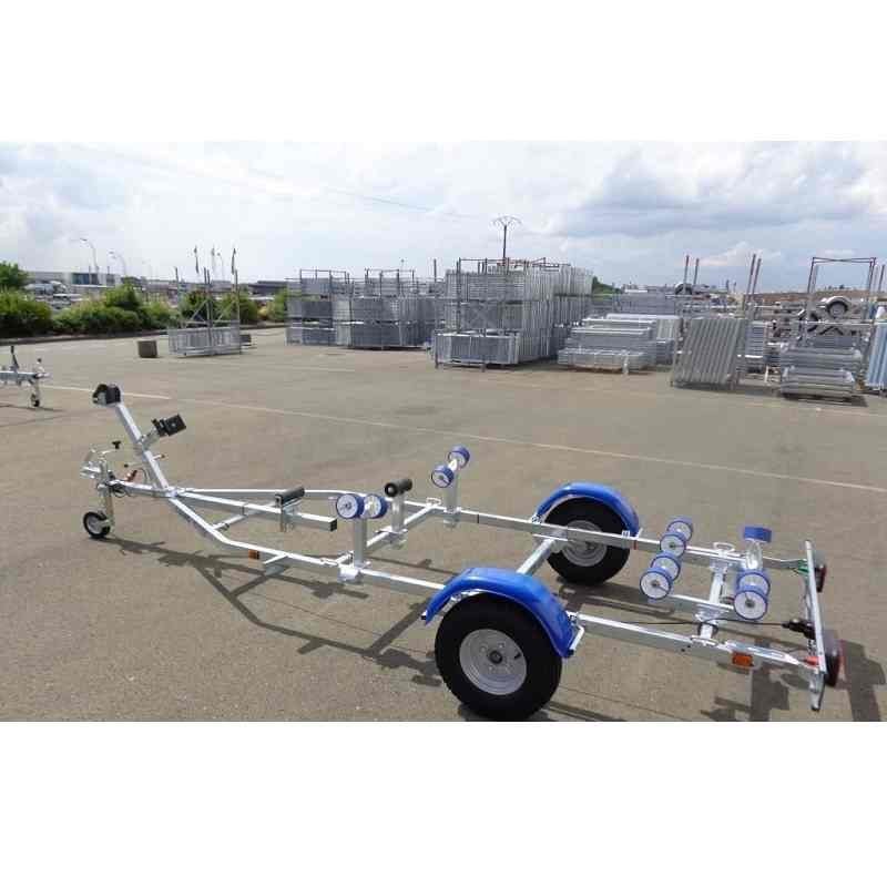 Ce porte bateau multi-rouleaux permet le transport sur route d’un bateau d’une longueur de coque maximale de 6,45 m et d’un poids maxi de 1860 Kg.