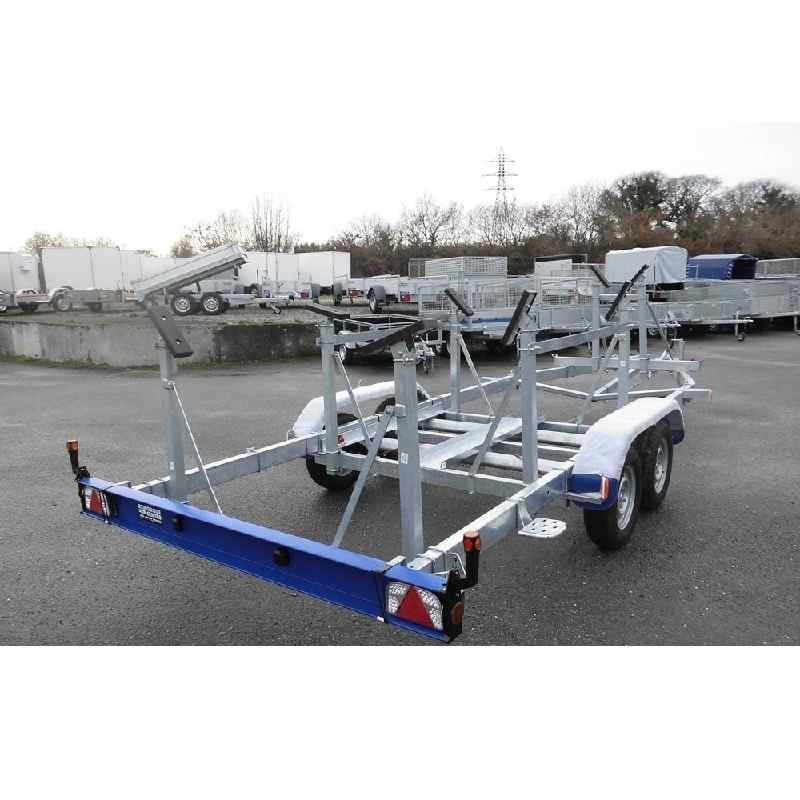 Cette remorque voilier Permet le transport sur route d’un quillard d’une charge maxi de 1860 Kg et d’une longueur de coque maximale de 7,2 m.